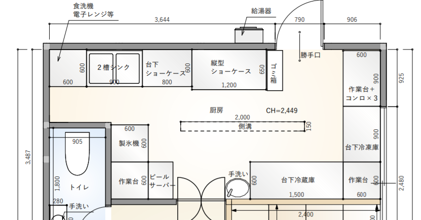 ■厨房機器類の配置図面の作成