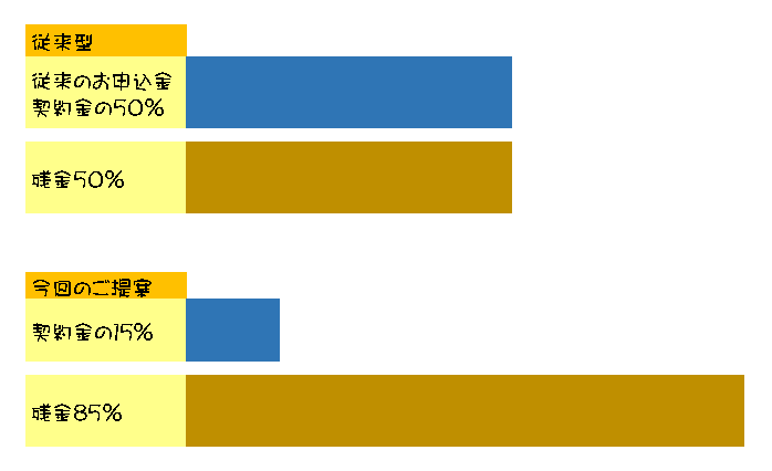 に契約金の15%を初回金として受領いたします。残金は申請の